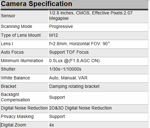 Support 1080p HD, support 1080@30FPS/25FPS image encoding output, and compatible with 720P resolution. With a 90 ° ultra -wide -angle lens.